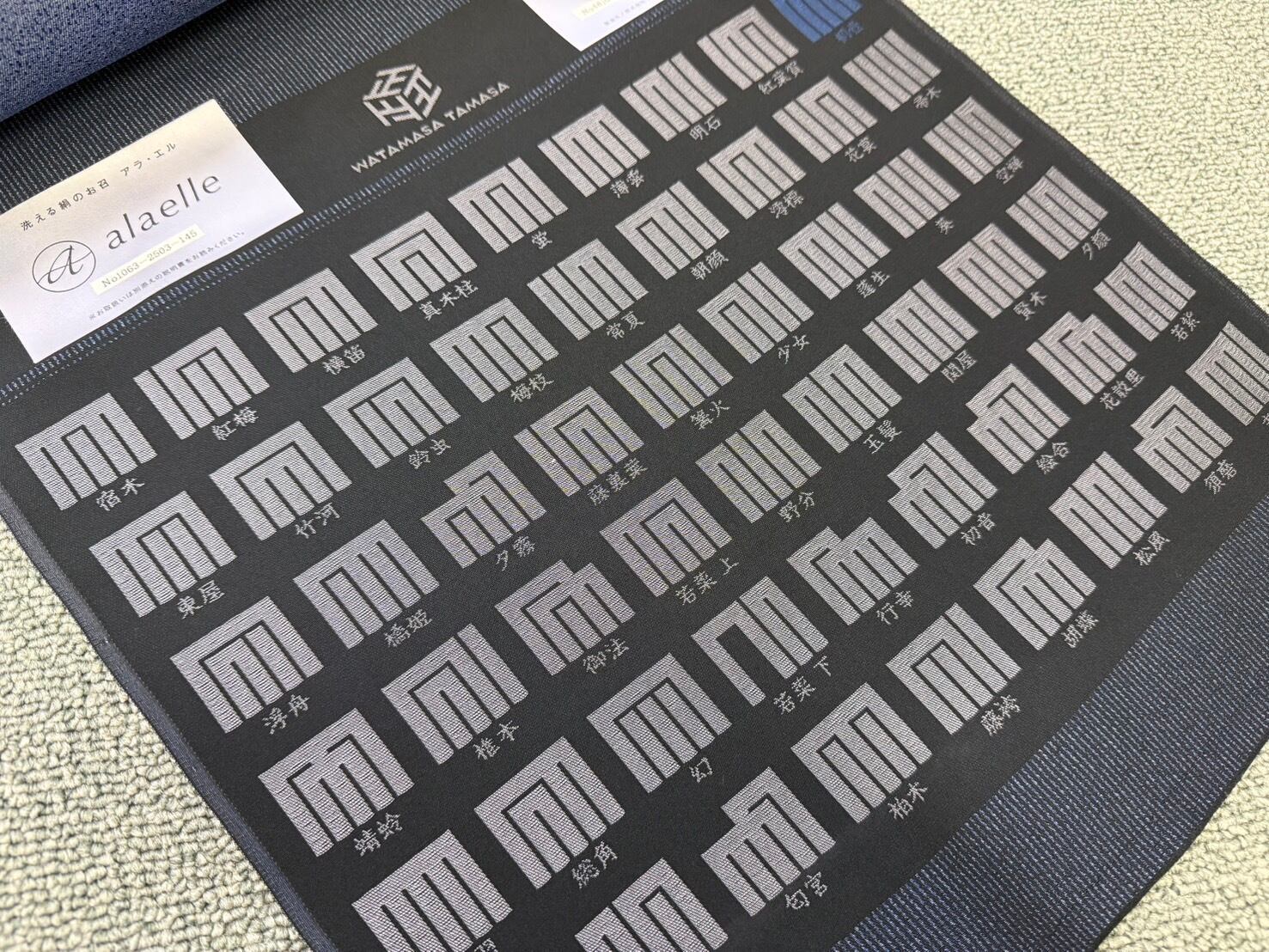 訳アリ洗える絹の御召「源氏香全通」黒×ブルー・ブルーグレー