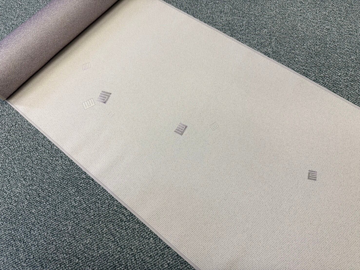 訳アリ洗える絹の御召「源氏香全通」ベージュ×藤・古代紫(少々難あり)